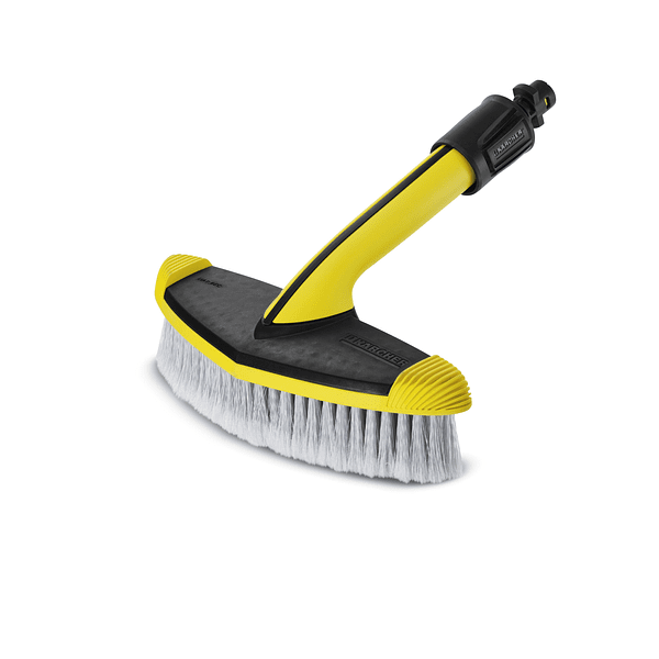 La tuerca racor suministrada conjuntamente garantiza una sujeción firme en la pistola de alta presión, el cepillo esponjoso de goma elimina la suciedad más persistente, como por ejemplo las moscas, y la empuñadura ergonómica asegura un manejo fácil y cómodo. En pocas palabras, La solución ideal para tareas de limpieza en superficies grandes en la casa y el jardín. El suave cepillo de cerdas es adecuado para todas las limpiadoras de alta presión Consumer de Kärcher de las clases K2-K7.